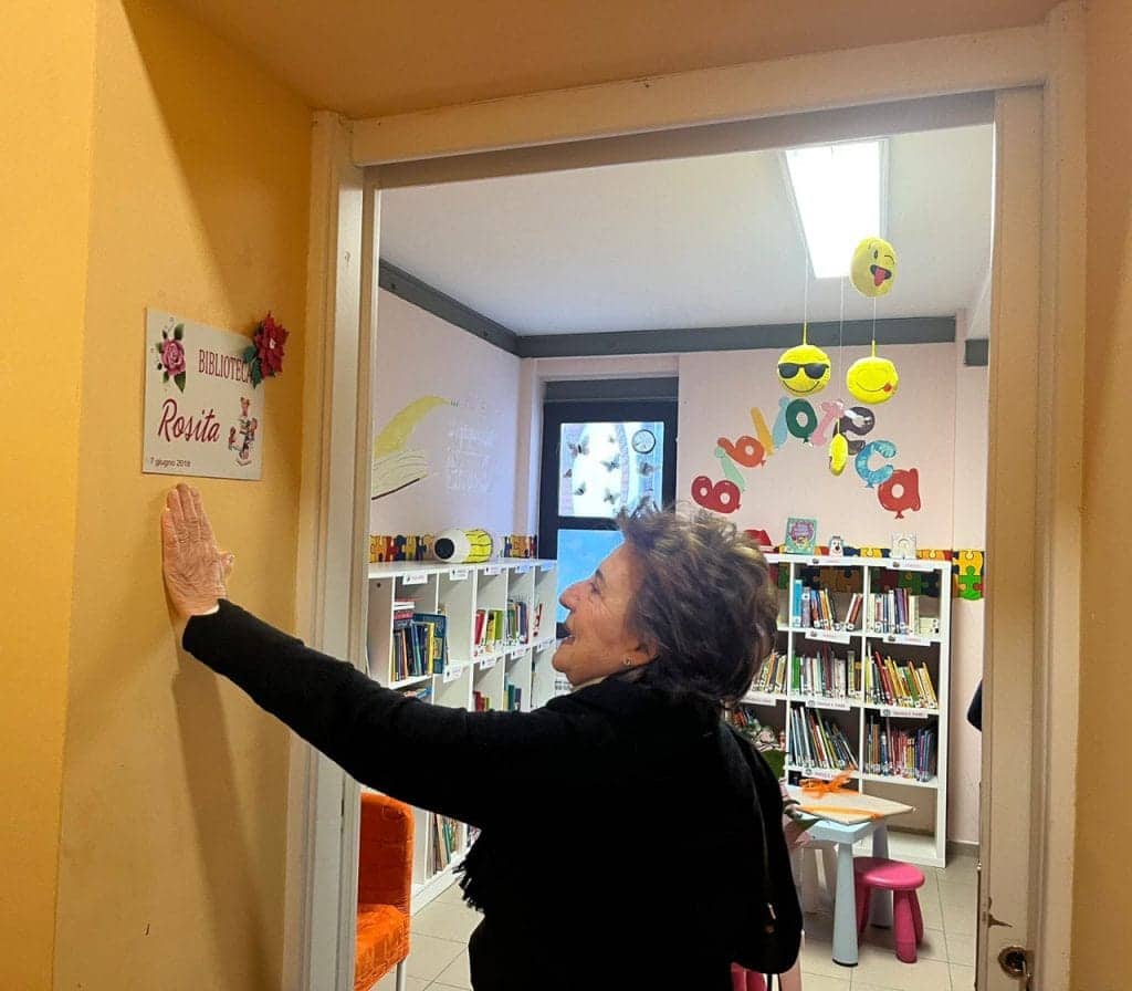 La mattinata è proseguita con la visita al plesso ed in particolare alla biblioteca “Rosita”, così intitolata dagli alunni nell’anno della sua fondazione, il 2018, in ricordo di chi, per colpa di gravi errori del passato, non ha potuto godere della libertà di leggere e di crescere in serenità. Poi l’inaugurazione della targa d’intitolazione della scuola sulla facciata principale del plesso, mentre gli ospiti hanno colto qualunque momento per scambiare compiacimento con gli alunni. Un volo di palloncini ha sugellato il desiderio di pace e di libertà per tutti gli uomini del mondo.
