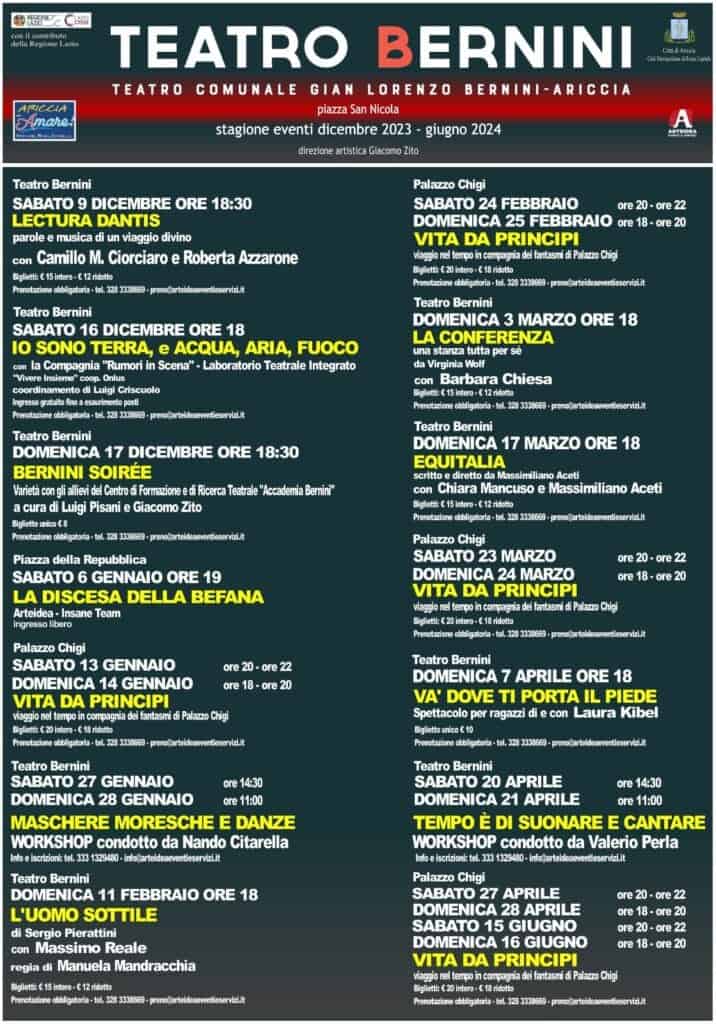 Dicembre già ricco di emozioni e applausi nel segno della magia del Teatro per la stagione di prosa 2023-2024 del “Bernini” di Ariccia, sotto la direzione artistica di Giacomo Zito. Il cartellone, con il contributo economico del Comune di Ariccia e nell’ambito delle iniziative di “Ariccia da amare Christmas time”, è partito con tre appuntamenti che hanno subito fatto registrare una significativa affluenza nel meraviglioso scrigno di cultura di Piazza San Nicola.