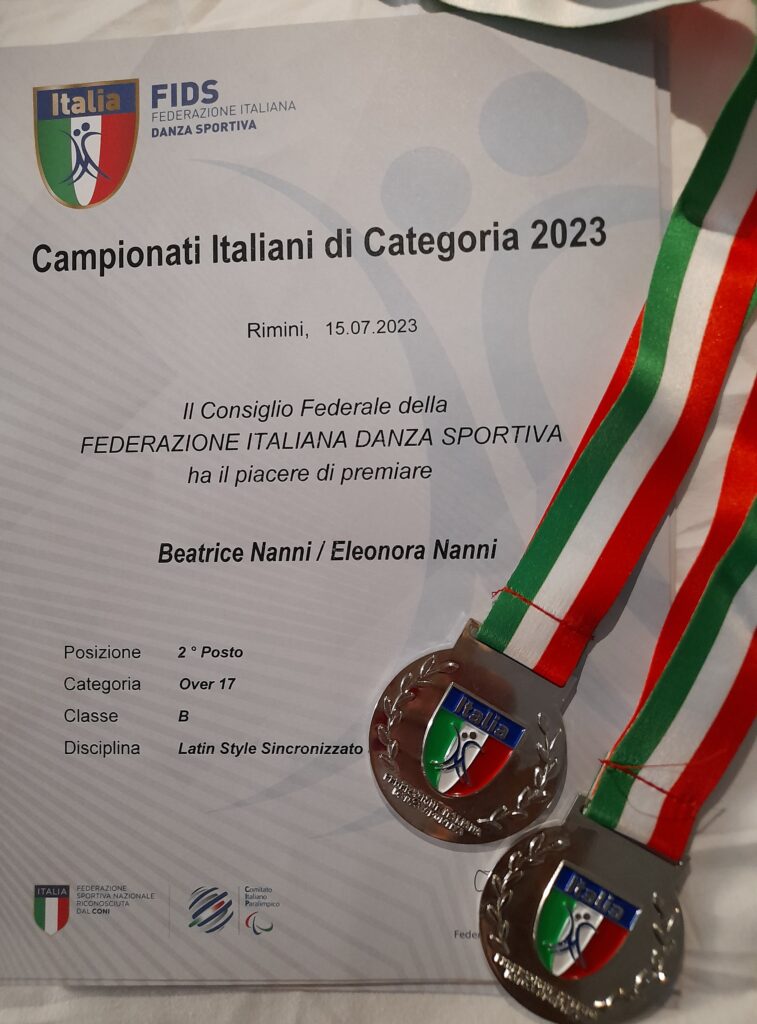 Si sono svolti a Rimini, dal 6 al 16 luglio, i campionati italiani di danza sportiva a Rimini organizzati dalla Federazione Italiana Danza Sportiva. Tra cinquanta duo in gara spiccavano ben due sportive di Velletri, le sorelle Eleonora e Beatrice Nanni, impegnate il 15 luglio. Il duo veliterno si è fatto valere, poiché ha conquistato la medaglia d’argento nel latin style sincronizzato. Una prestazione, la loro, apprezzata da tutti e commentata con moltissimi complimenti. Eleonora e Beatrice orgoglio veliterno: tra i primi fans, oltre ai familiari, la loro insegnante Eva Colacchi – che ne ha curato la preparazione tecnica in vista di questi Campionati – della scuola ASD Studio Danza Formisano di Velletri. Alle sorelle Nanni i più sinceri complimenti della nostra Redazione.