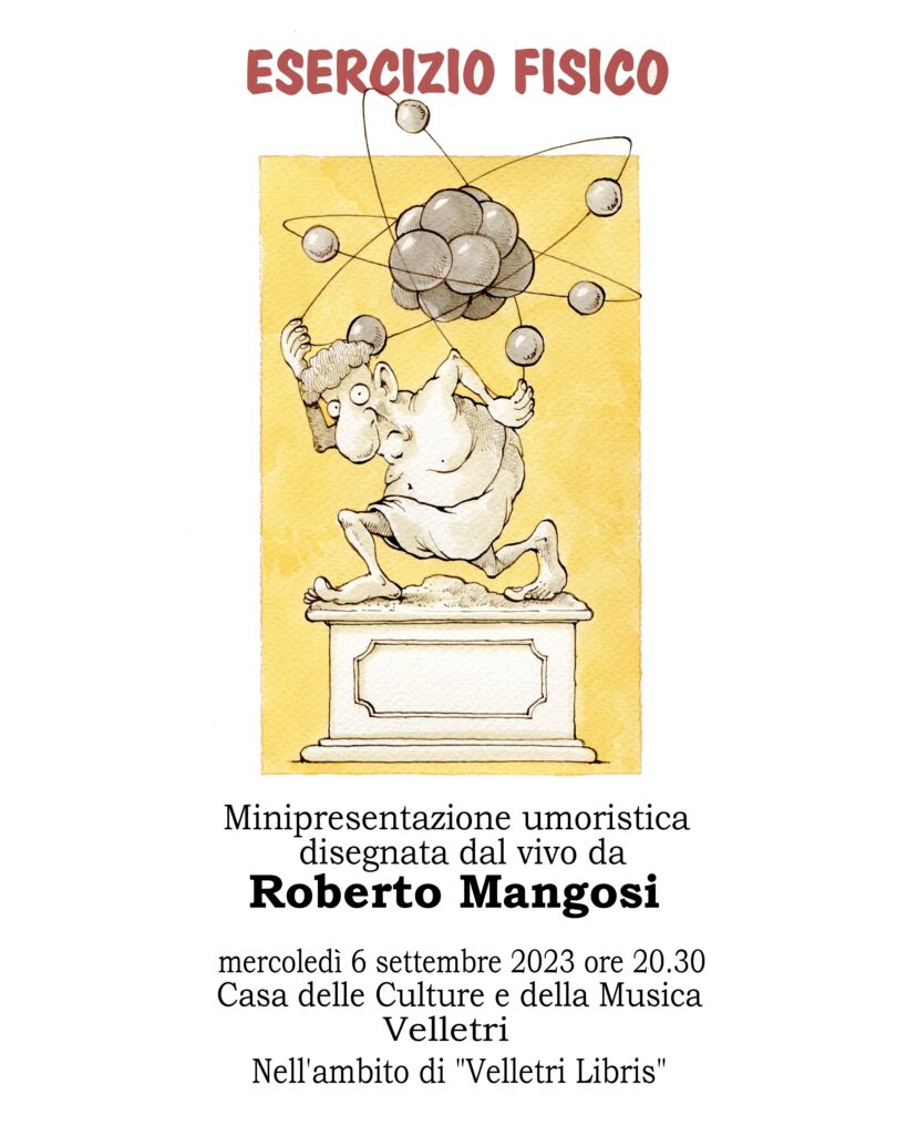 Prima dell’incontro con lo scrittore avranno luogo come sempre le degustazioni enogastronomiche gratuite. Alle 20.40, invece, lo spazio dedicato alla poesia a cura di Giulio Mazzali e Claudio Leoni (“Piccolo prologo in versi”) oltre alla consueta presentazione della Cantina ospite a cura di Massimo Morassut. Contemporaneamente si svolgeranno i laboratori per i giovani lettori. Sempre al Chiostro, inoltre, si terrà la mini presentazione umoristica disegnata dal vivo da Roberto Mangosi. Una gradevole novità grazie alla presenza del noto vignettista ed illustratore, che ha iniziato la sua carriera di umorista all’età di 18 anni. Mangosi ha al suo attivo numerose collaborazioni con pubblicazioni nazionali ed internazionali, tra le quali Linus, La Settimana Enigmistica, Il Male, Playboy e l’Huffington Post. Ha ricevuto importanti premi e riconoscimenti nei più prestigiosi e popolari concorsi di grafica, primo tra tutti il Salone Internazionale dell’Umorismo di Bordighera.