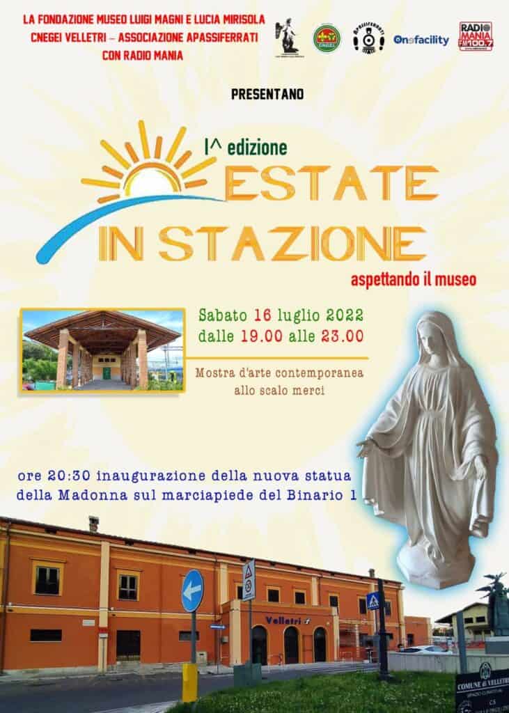 La Fondazione Museo Luigi Magni e Lucia Mirisola insieme agli scout del CNEGEI ha voluto come primo atto (dopo la firma del contratto di comodato d’uso degli ormai noti ambienti) porre riparo al furto della statua della Madonna della stazione avvenuto nel 2013 lanciando un appello raccolto dall’Avvocato Alessandro Priori per avere dato in dono una nuova immagine della Vergine da ricollocare all’interno della stazione.