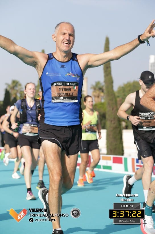 Nello stesso giorno, un altro importante traguardo è stato raggiunto da Andrea Lucarelli nella prestigiosa Maratona di Valencia, conosciuta per il suo percorso tecnico e scenografico. Lucarelli ha chiuso la gara in 3h37’45”, dimostrando ancora una volta l’alto livello di preparazione.