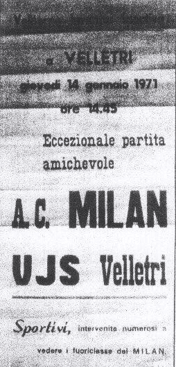 La tensione e la trance agonistica non accennano a scalfirsi, a dispetto dell’amichevole, al 60esimo il Milan segna fortunosamente: ancora punizione di Rivera e traiettoria violentissima deviata da Nesti, che spiazza il proprio portiere. I ritmi si abbassano nel finale e l’uno-due di Prati regala l’arrotondamento del parziale per gli undici di Rocco, favoriti dal turn over contro una Vjs orgogliosa. I milanisti espugnano Velletri e si preparano nel migliore dei modi alla gara di campionato contro il Cagliari della domenica successiva (finirà 4-0). Resta la prova di carattere per i rossoneri di Cattozzo: questa pagina di storia della Vjs Velletri è stata scritta proprio da loro. Era il 14 gennaio 1971.