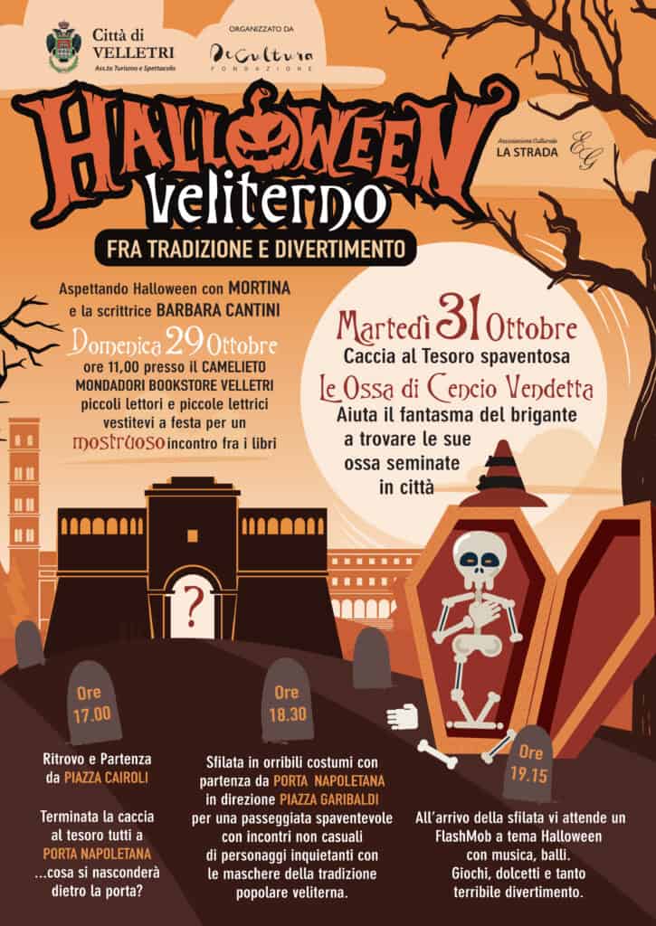 Tutto pronto a Velletri per la Festa di Halloween, con la città che dopo l’evento di avvicinamento svoltosi al Camelieto domenica 29 ottobre è pronta ad accogliere grandi e piccini per un pomeriggio di spaventoso divertimento lungo le strade del centro cittadino. Il programma delle iniziative, messo a punto dalla Fondazione De Cultura in collaborazione con l’Associazione La Strada e il patrocinio del Comune di Velletri – Assessorato Turismo e Spettacolo, prevede una caccia al tesoro itinerante, laboratori, incontri culturali, giochi, e tanto altro all’insegna del divertimento.