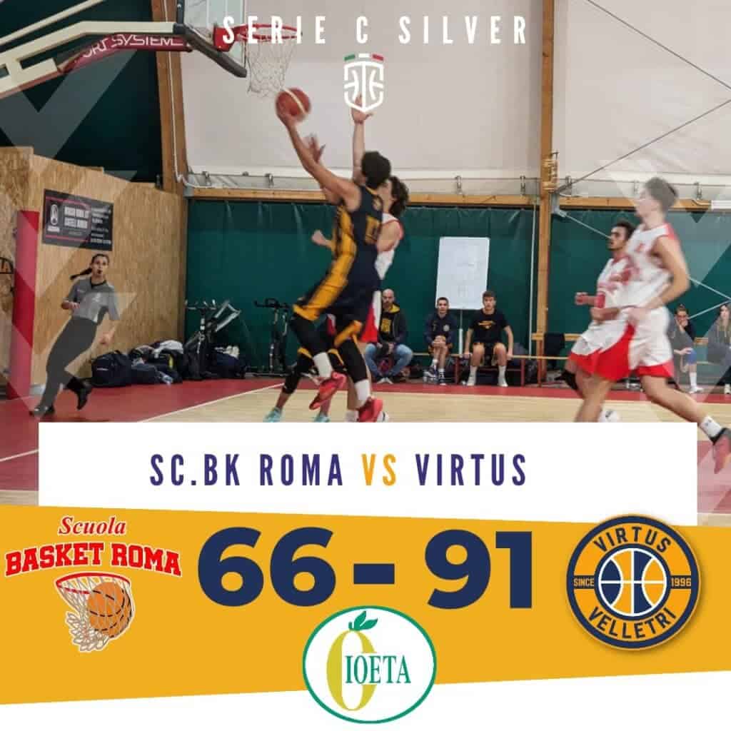 Importante successo esterno ottenuto dalla Virtus contro la Scuola Bk Roma, in una gara gestita egregiamente dai nostri ragazzi per tutti i 40′ di gioco. La sfida del PalaReny inizia subito in salita per i padroni di casa, costretti ad inseguire sin dal I quarto (terminato 12-18 per noi) per poi proseguire analogamente nel II periodo: nonostante l’ottima prestazione in fase offensiva dei romani, i 26 punti realizzati dai nostri ragazzi ci consentiranno di giungere alla pausa lunga in vantaggio di 11 lunghezze (33-44). Rientrando sul terreno di gioco, i capitolini riescono inizialmente a portarsi in svantaggio di soli 7 punti, salvo poi subire un’ondata di canestri dei gialloblù: in particolare, tra fine III quarto ed inizio IV quarto, le sette triple consecutive messe a segno dai nostri ragazzi ci consentiranno di ristabilire un notevole divario, poi gestito sino alla fine del match, terminato 66-91.