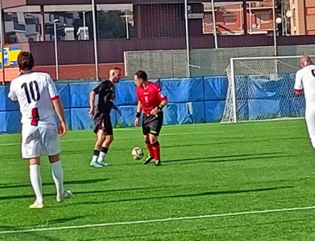 Succede tutto nel primo tempo, con la compagine di De Massimi che passa in vantaggio al termine di un’azione manovrata e avvolgente da destra a sinistra conclusa con il gran tiro di Quattrocchi sotto la traversa per l’1-0. Passano alcuni minuti e sono veementi le proteste dei rossoneri per un richiesto tocco di mano in area di rigore pometina non sanzionato dall’arbitro. Il Città di Pomezia non sta di certo a guardare e si conferma squadra di livello passando prima del duplice fischio con un colpo di testa di Mariani, bravo a intercettare un cross dalla tre quarti, eludere le marcature e anticipare Fusco in uscita. Proprio il portiere rossonero, invece, si rivelerà decisivo nel secondo tempo con due grandi interventi che salvano il risultato.